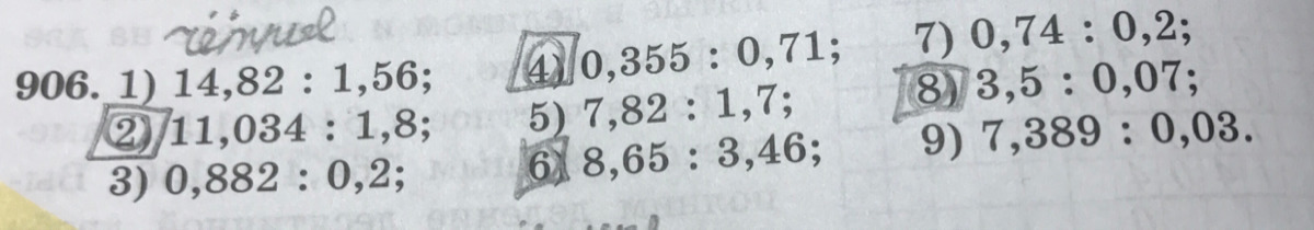 Помогите пожалуйста 2)11,034:1,8 4)0,355:0,71 6)8,65:3,46 8)3,5:0,07