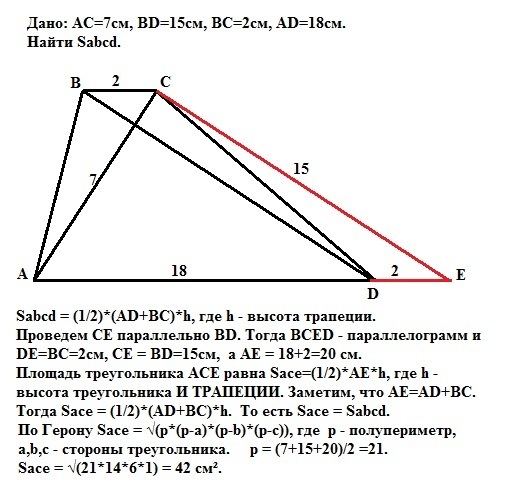 Тогда Sace = (1/2)*(AD+BC)*h. То есть Sace = Sabcd.