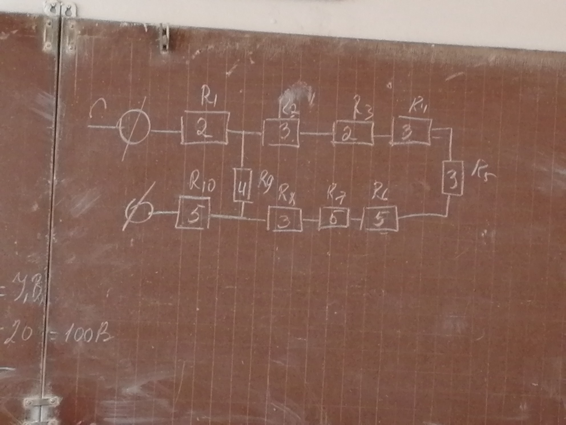 Rобщ =R1+R10+R23456789 = 2+5+24/7 = 10.43 Ом