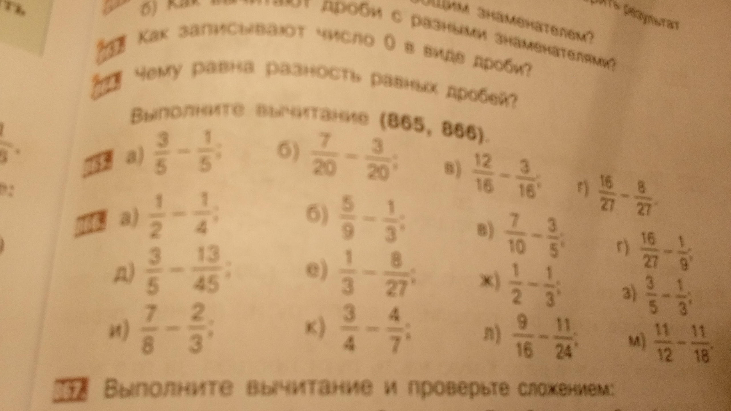 И) 7/8 - 2/3 = 21/24 - 16/24 = 5/24