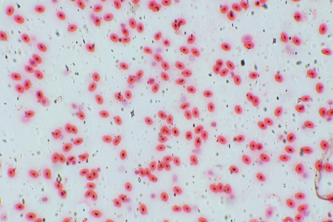 Эритроциты человека безъядерные, в то время как у эритроцита лягушки есть ядро;