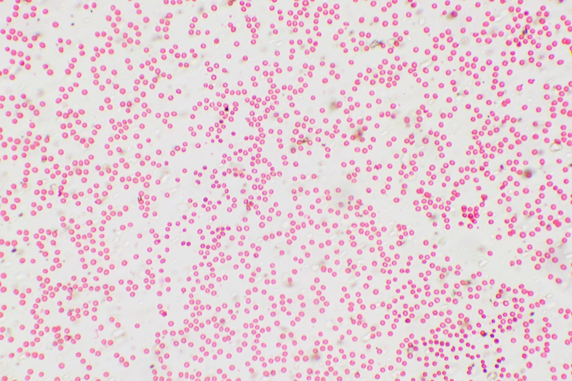 У человека эритроцит имеет ярко розовую окраску, у лягушки - бледно розовую.