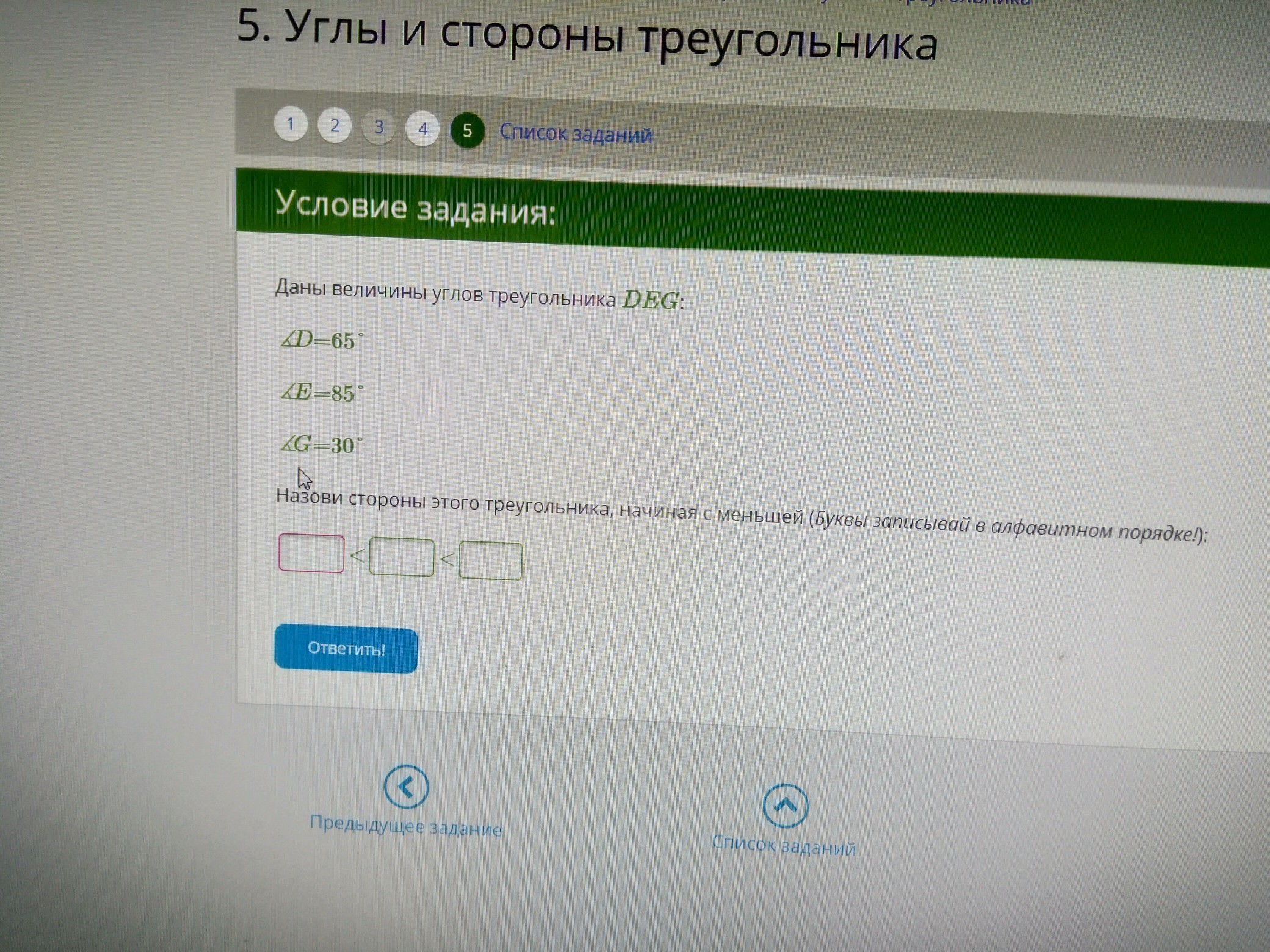 DE<EG<DG тк наименьшая сторона та, которая лежит напротив большего угла.