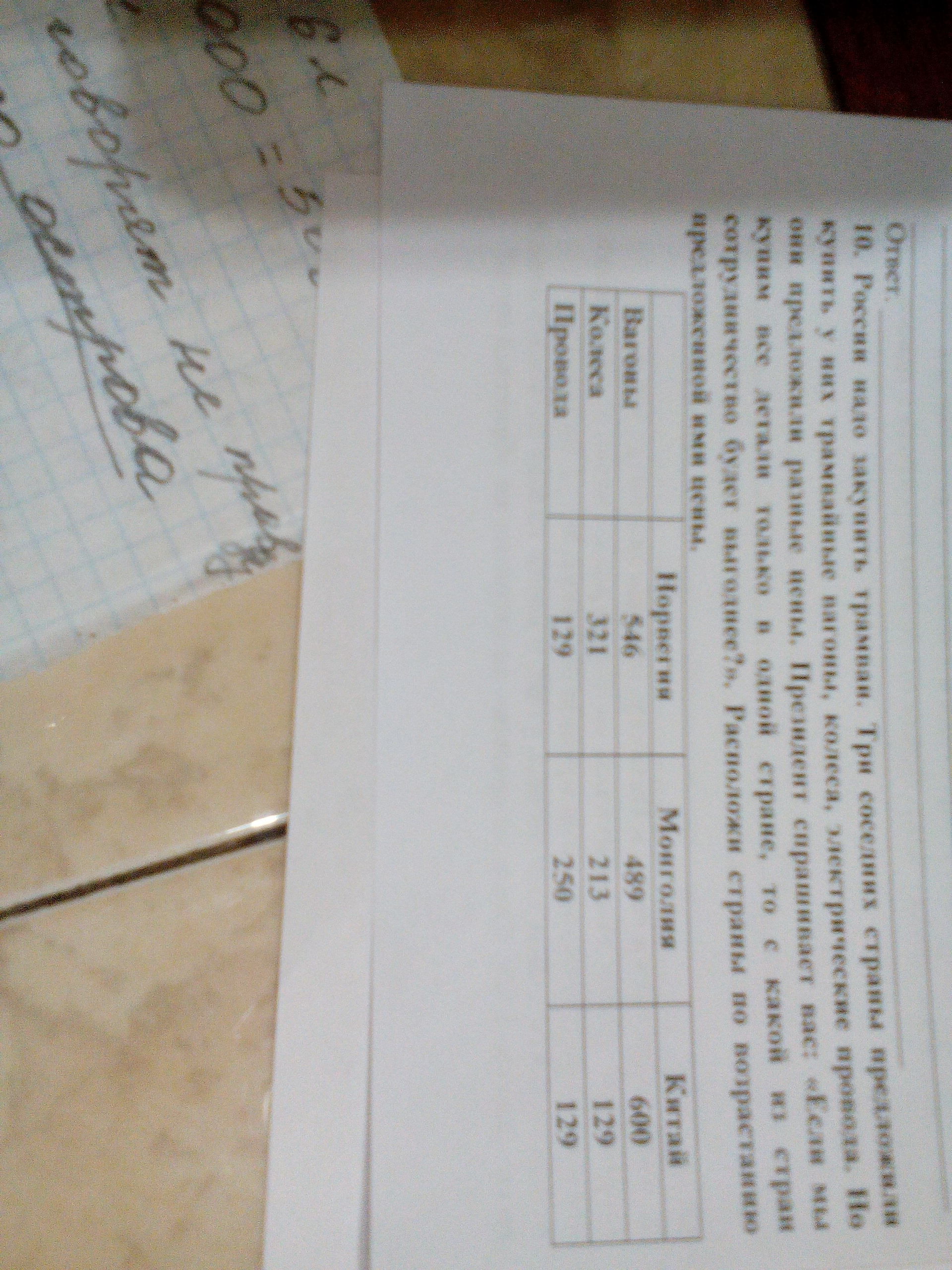 России надо закупить трамваи. Три соседних страны предложили купить у них трамвайные вагоны, колеса, электрические провода. Но они предложили разные цены. Президент спрашивает вас: «Если мы купим все детали только в одной стране, то с какой из стран сотрудничество будет выгоднее?». Расположи страны по возрастанию предложенной ими цены.