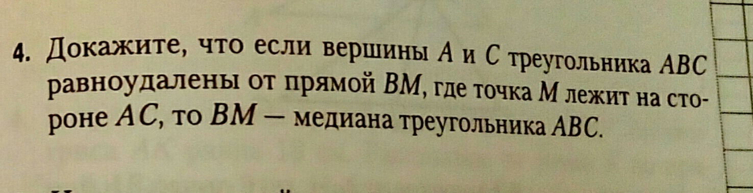 Если ВМ равноудалено то АМ=МС тогда ВМ медиана