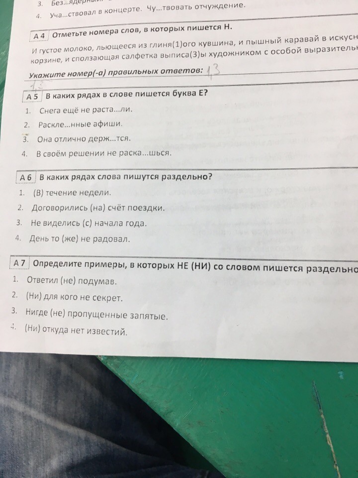 А4. 1 и 3 одна буква Н. Слово под цифрой 2 обрезано