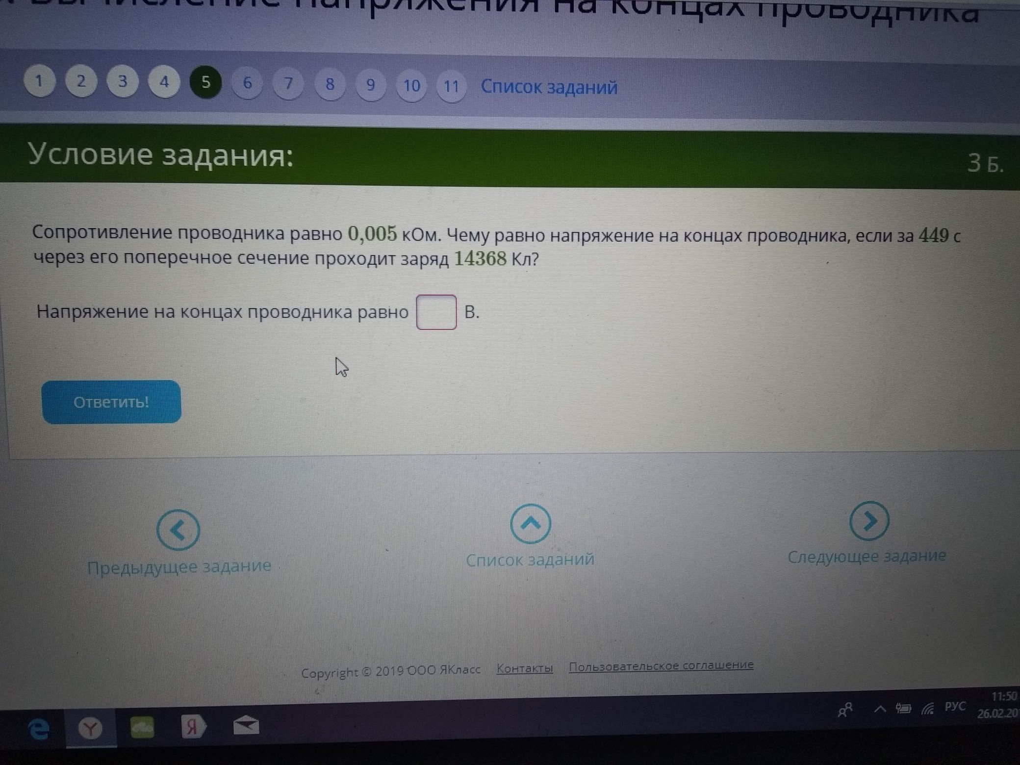 u = qr/t = 14368*5/449 = 160 B - ответ.