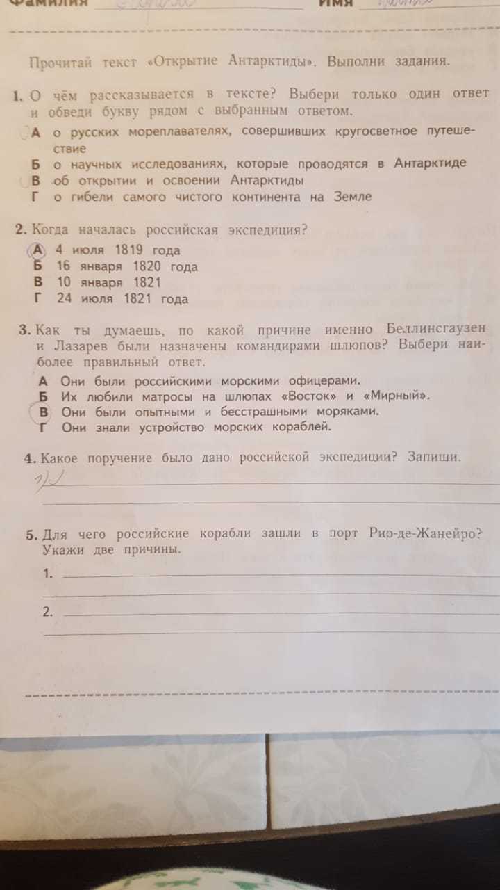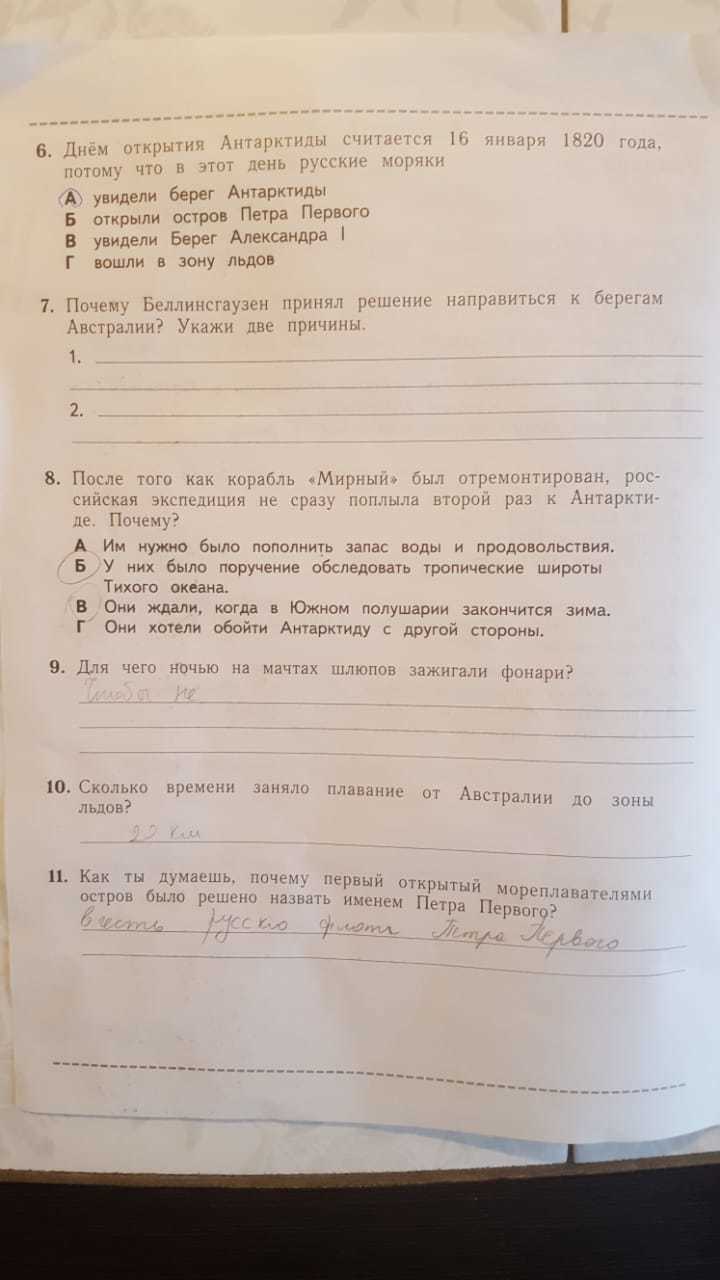 Я так думаю 1- А) о русских мореплавателях; 2-А) 4 июля 1819года; 3-В) они были опытными... 4-Их поручением было исследование и открытие новых земель; 5- 1) чтобы передохнуть немного 2) пополнить запасы воды и продовольствия; 6-А); 7- 1) Из-за поломки корабля Мирный 2) климат не позволял им пройти через огромные глыбы льда ;8-В) ; 9-Чтобы не потеряться кораблям в густом тумане; 10-около 7 месяцев; 11- потому что император Пётр 1 был великим и сделал многое для процветания страны а также может быть и ещё из-за того что Пётр 1 создал морской флот
