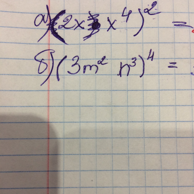 (2xcdot x^4)^2=(2x^5)^2=4x^{10}\\(3m^2n^3)^4=81m^8n^{12}