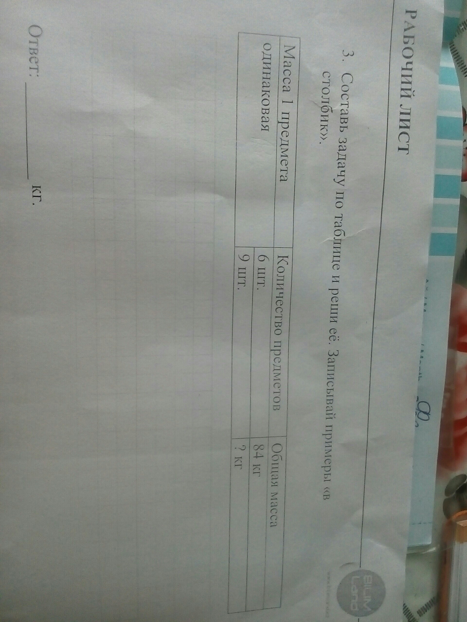 Если известно,что 6 предметов равной массы вместе весят 84кг,то сколько весят 9 таких же предметов?