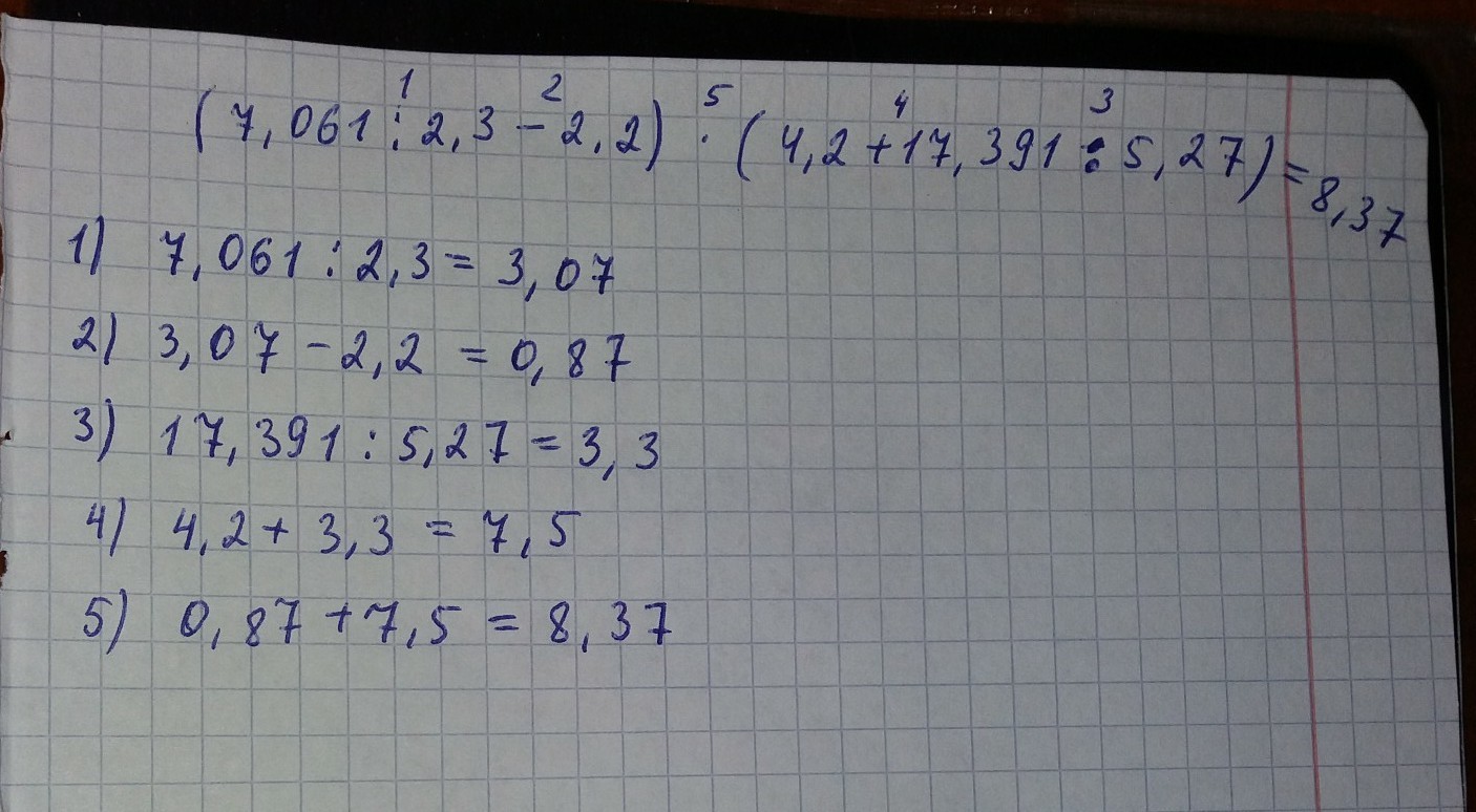 (7,061 : 2,3 − 2,2) · (4,2 + 17,391 : 5,27)=6,525