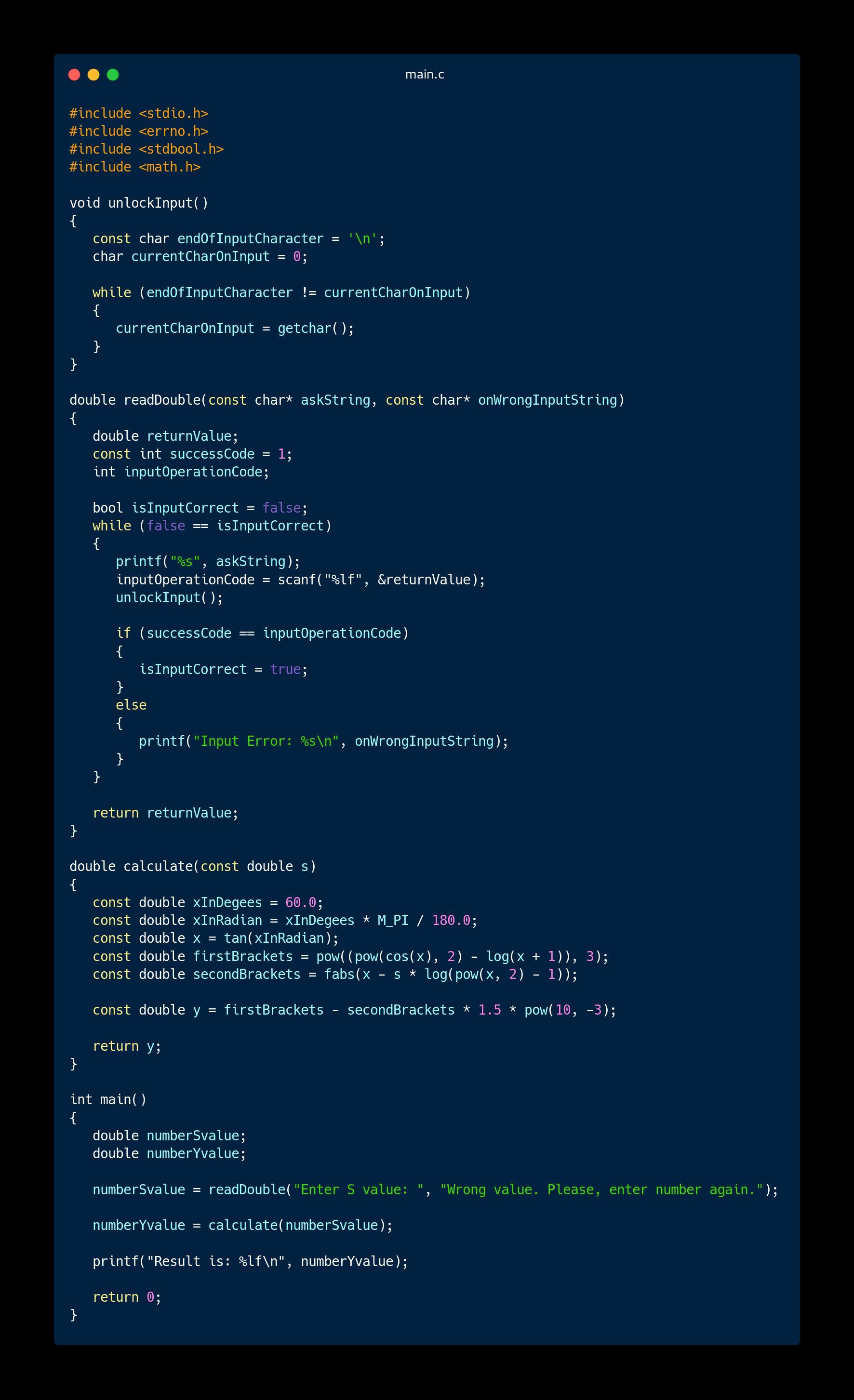Код прикреплен файлом (в расширении .txt, знания не поддерживают расширение .c) и картинкой.