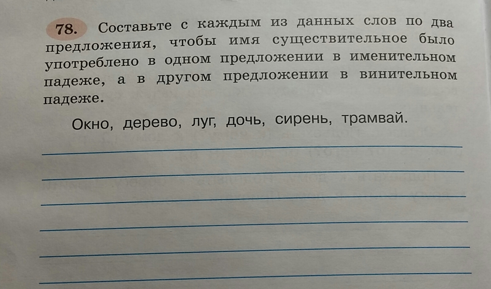 первое предложение в и.п., второе- в.п.
