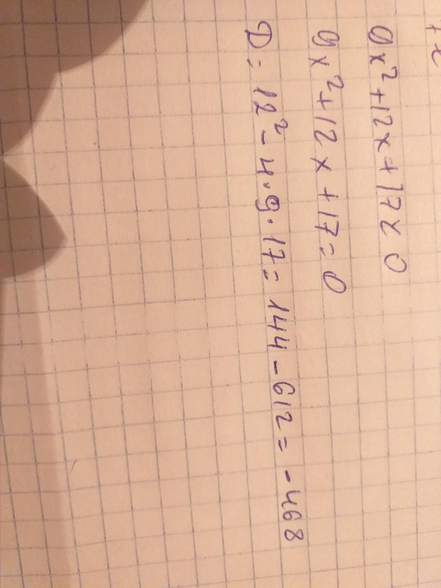 Так как дискриминант отрицательный, то при любом x уравнение будет неотрицательным. Решений нет