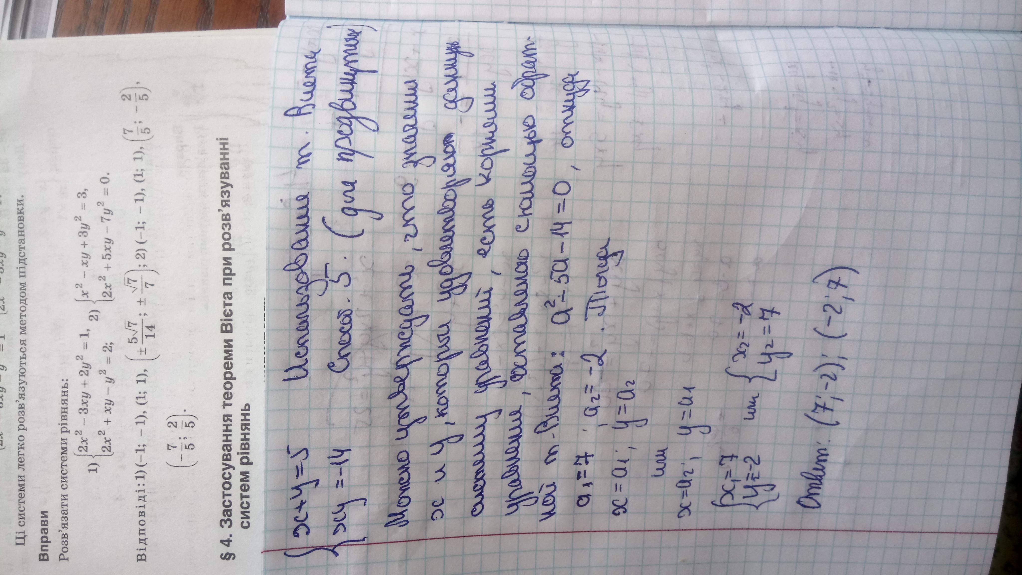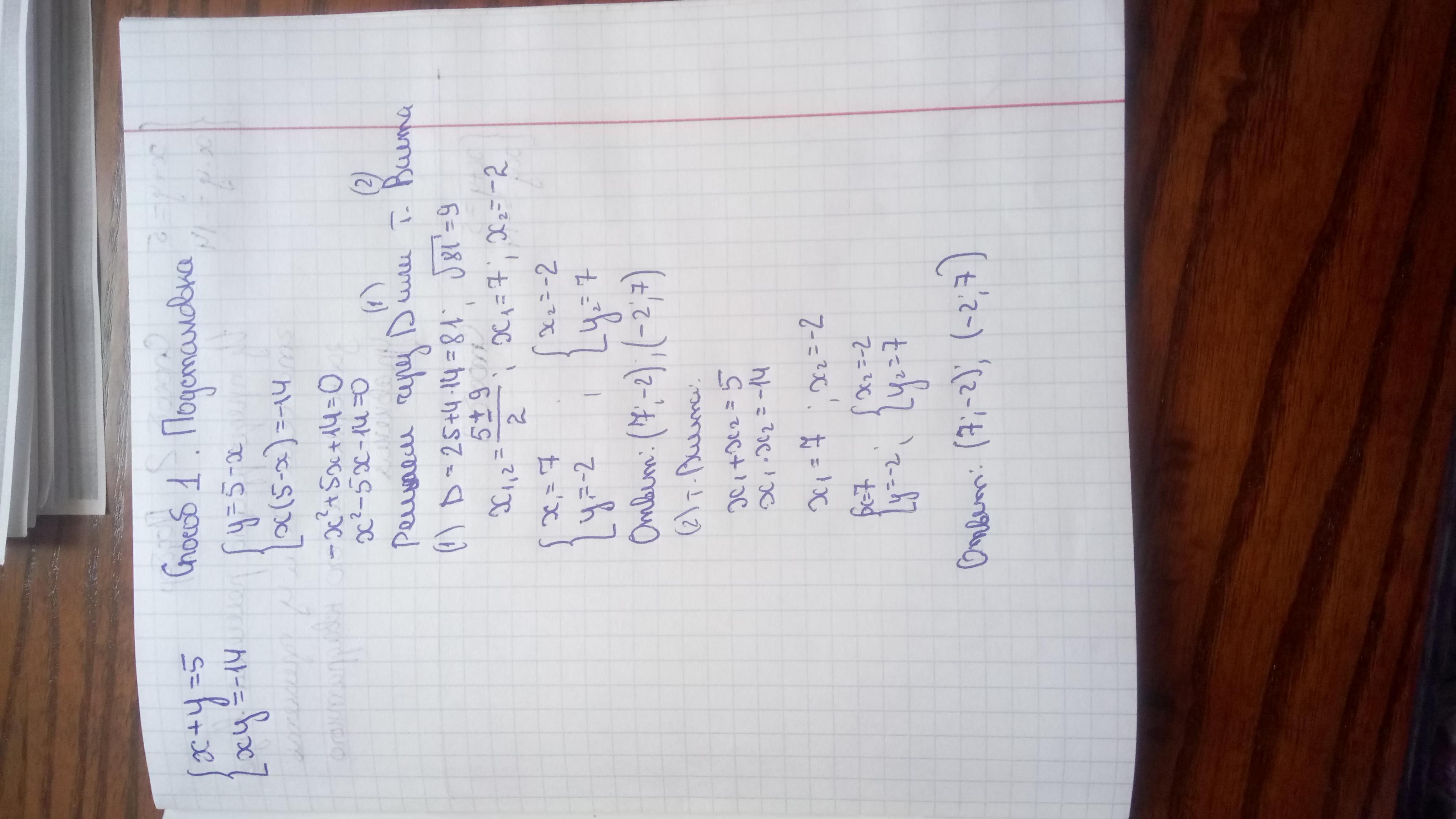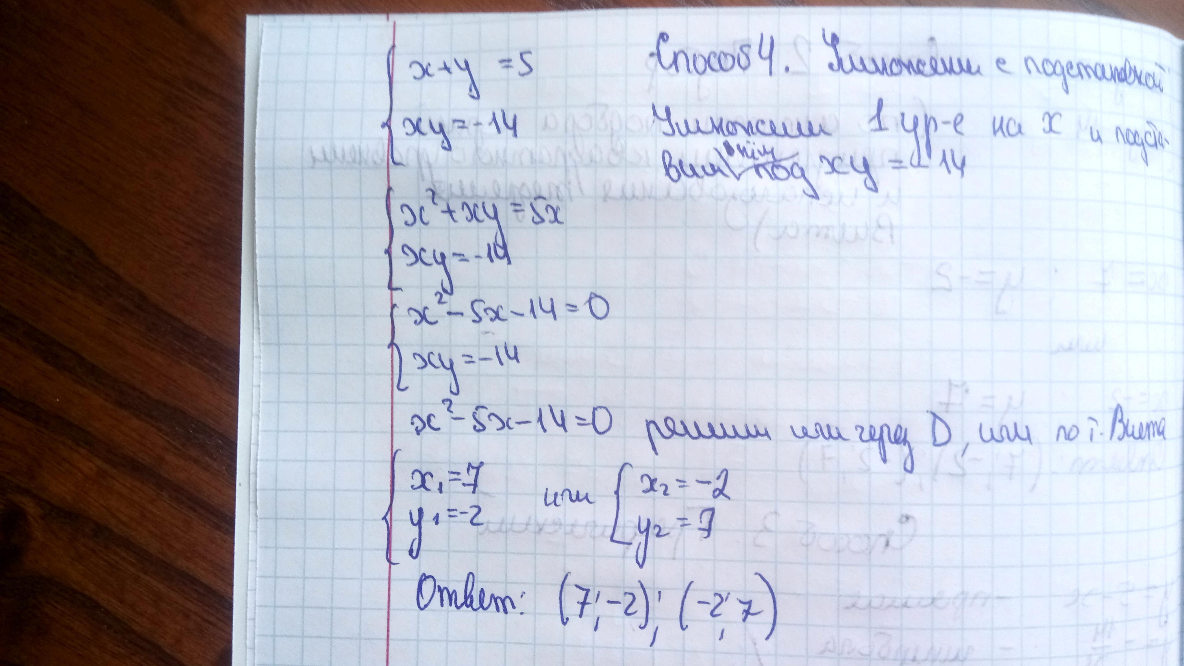 Решением системы будут пары чисел (-2;7) и (7; - 2).