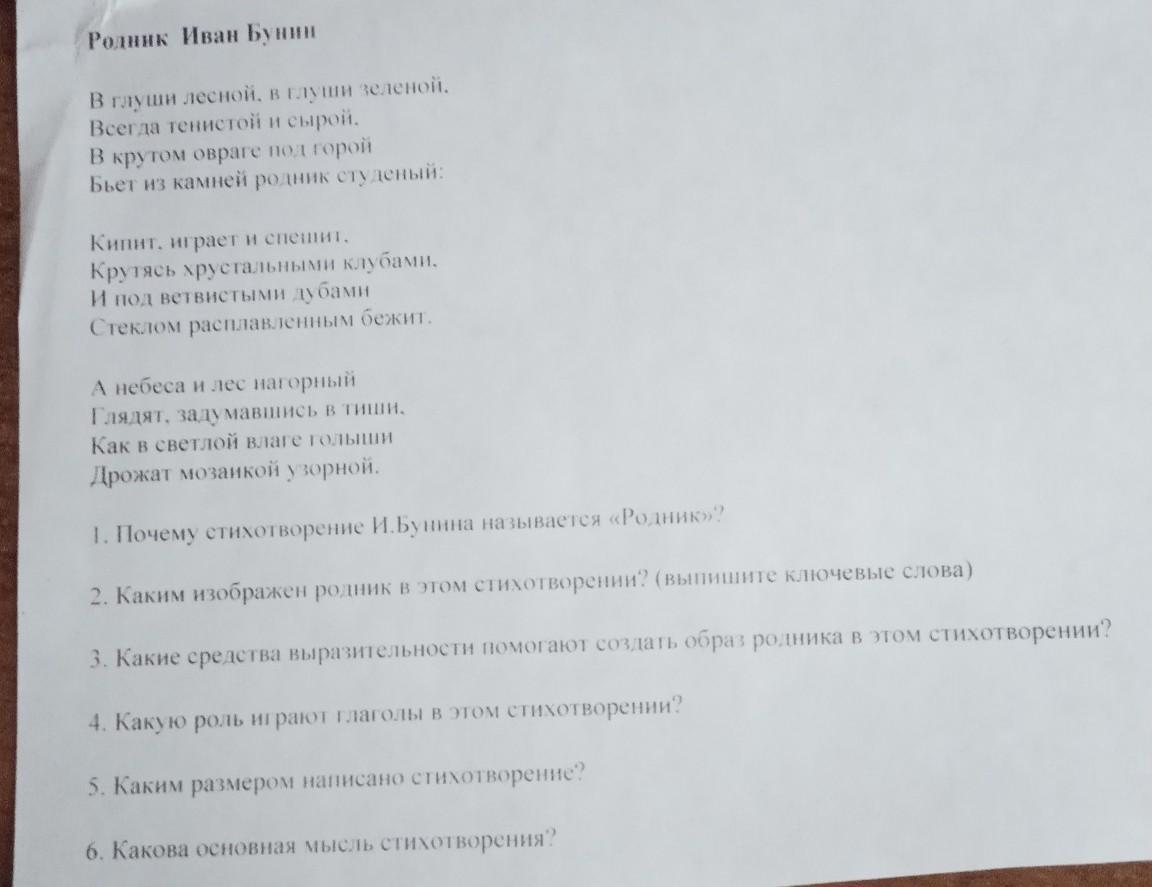 СРОЧНО ДАЮ 35 баллов!!!!!!!ответить на вопросы к стихотворению "Родник"