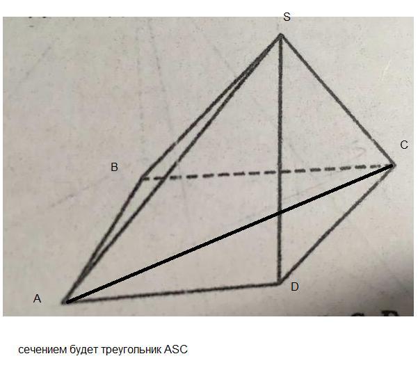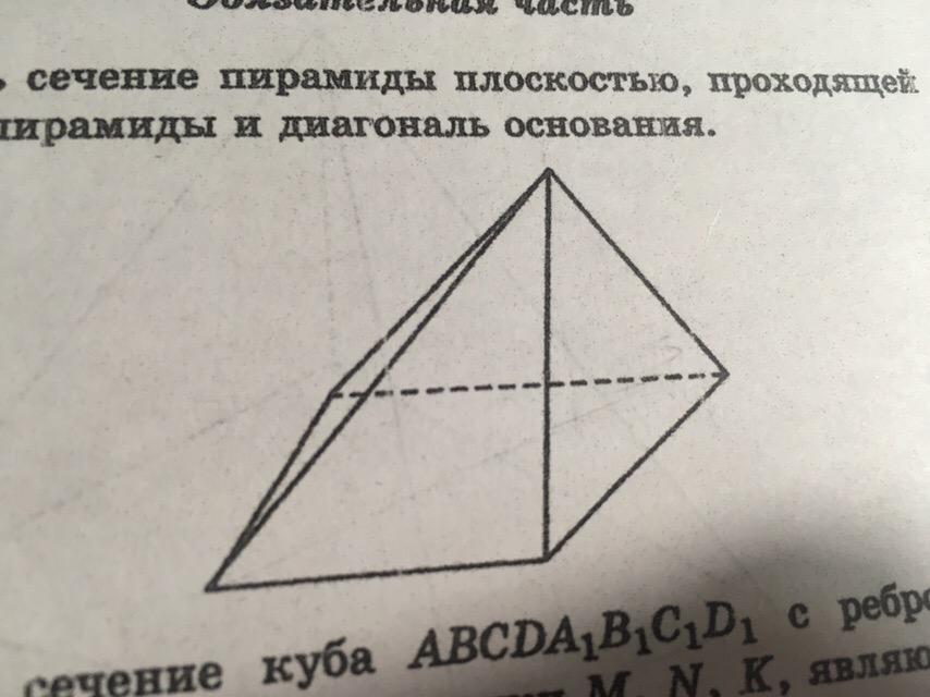 Построить сечение пирамиды плоскостью, проходящей через вершину пирамиды и диагонали основания
