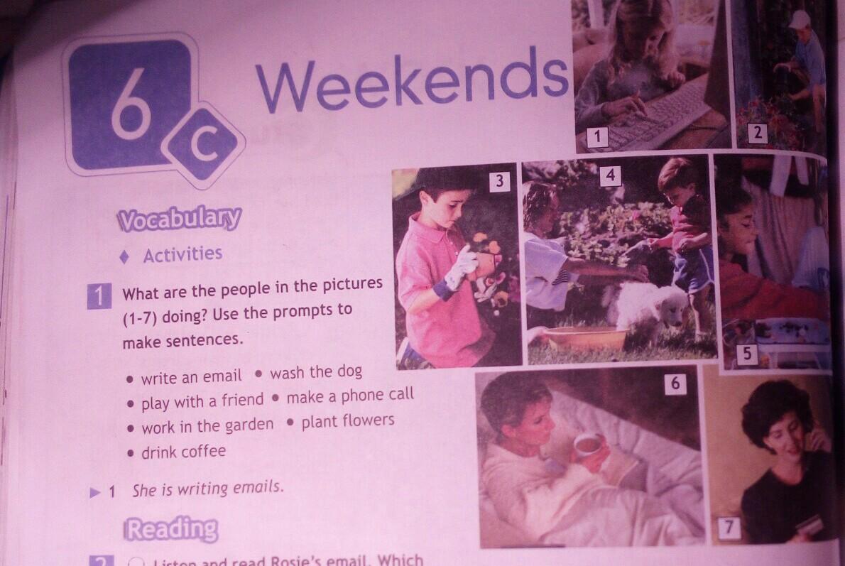 1. She is writing emails