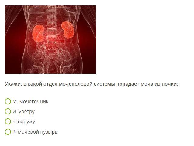 моча стекает по мочеточнику и попадает в мочевой пузырь