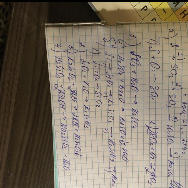 осуществите цепочку превращений а) сера - сернистый газ - оксид серы (VI) - серная кислота - сульфат бария; б) кремний - оксид кремния (IV) - силикат калия - кремниевая кислота - силикат натрия.