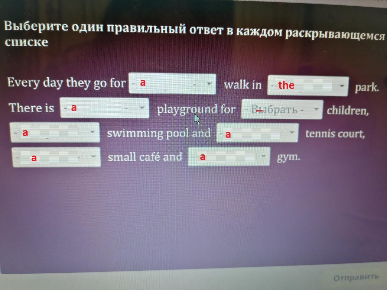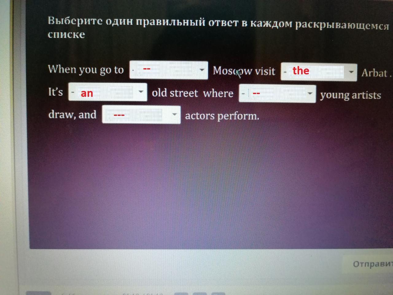 помогите расставить правильно артикли (A, An, нулевой артикль, the) на фото расставлены неверно