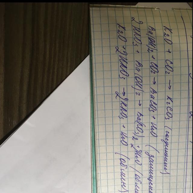 Напишите уравнения всех возможных реакций между следующими веществами: оксид калия, оксид углерода4, гидроксид бария, азотная кислота. Определите тип химической реакции. СРОЧНО ПОЖАЛУЙСТА, ЛЮДИ ДОБРЫЕ!!!!