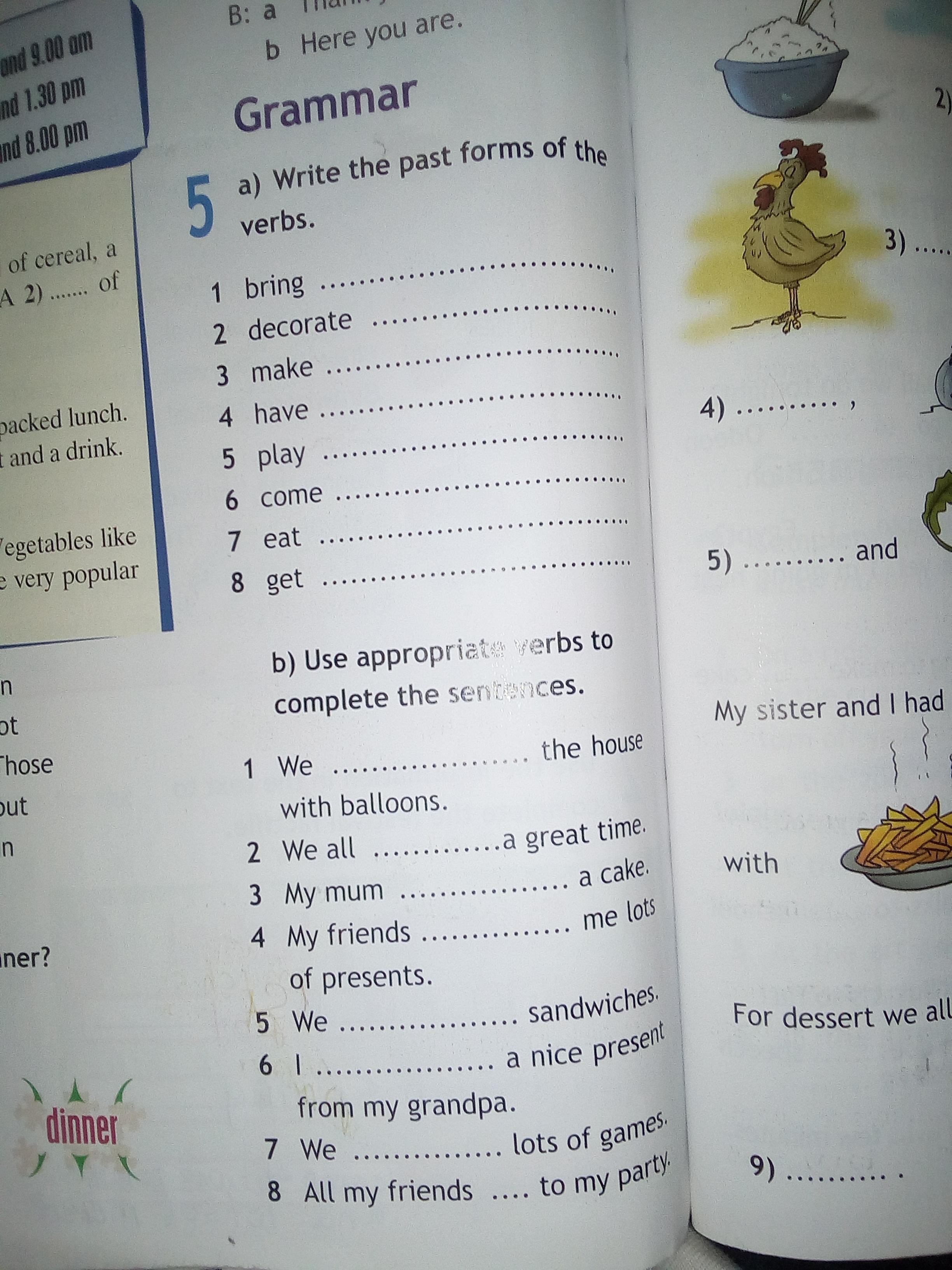 #5. а) brought, decorated, made, had, played, came, ate, got