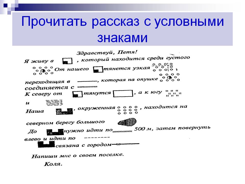 Придумать небольшой рассказ с условными знаками и описанием маршрута (по типу: я сделал 100 шагов на северо-запад).