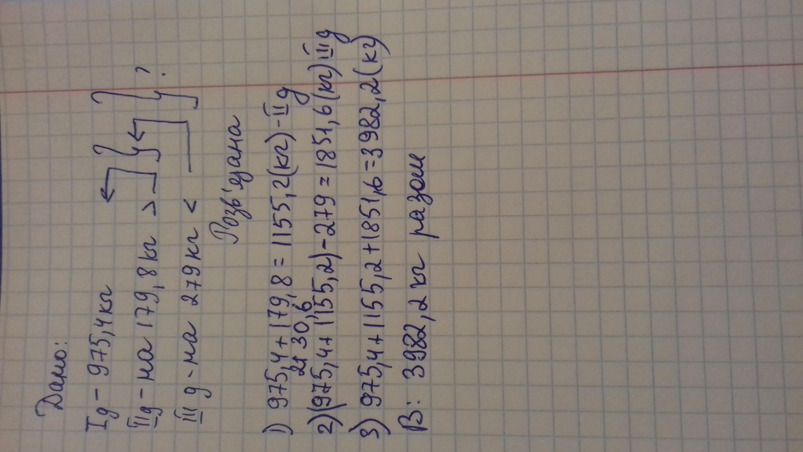 Першого дня було зібрано 975,4 кг помідорів, другого - на 179,8 кг більше , ніж першого, а третього на 279 кг менше, ніж першого і другого дня разом. Скільки помідорів зібрали разом?