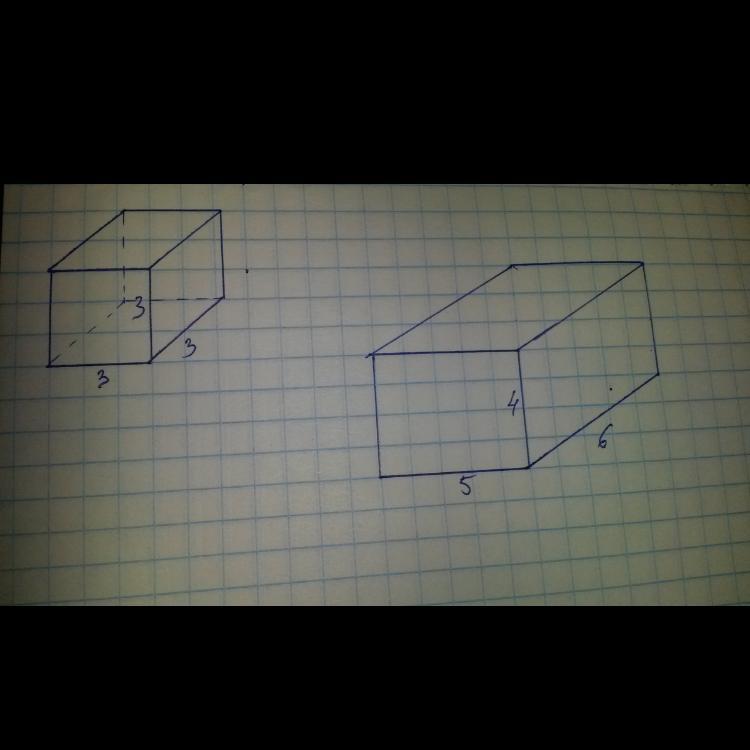 Начертить на плотной бумаге развертки куба (с ребром 4 см) и прямоугольного параллелепипеда со следующими измерениями: ширина 3 см, длина 7 см, высота 4 см)
