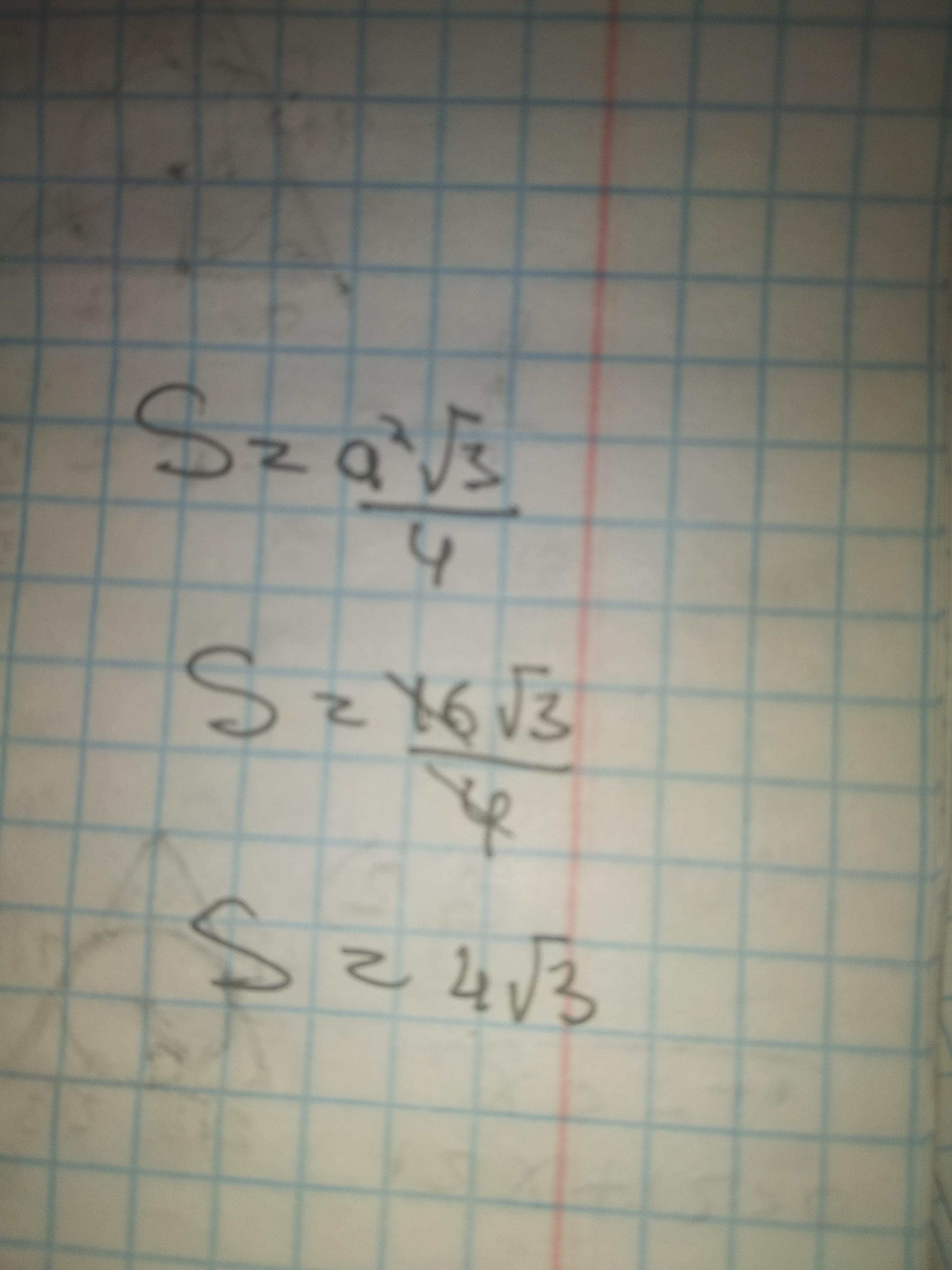 2) Раз треугольник равносторонний по условию задачи, то a = b = c = 4.