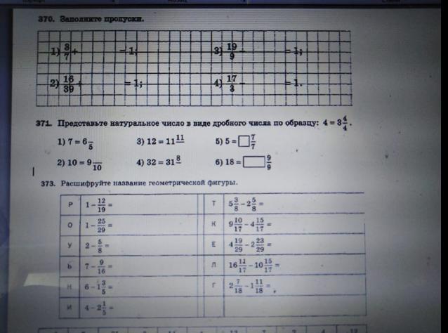 372. Р) 7/19; О) 4/29; У) 11/8; Ь) 103/16; Н) 27/5; И) 18/5; Т) 11/4; К) 80/17; Е) 54/29; Л) 98/17; Г) 1/6.