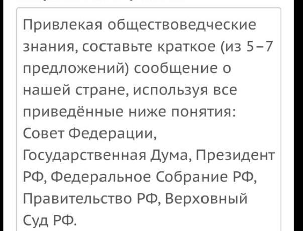 Если говорить о Президенте то можно сделать вывод что на нем держится вся наша страна. Еще стоит отметить что наша страна не сможет без государственной думы потому что именно там принимаются все законы которые касаются всех нас. Ну и конечно мы не сможем без Верховного суда потому что булет очень много негодяев в стране. Ну и конечно нам никуда без Федерального собрания. Потому что оно тоже принимает немало важное участие в жизни нашей страны.