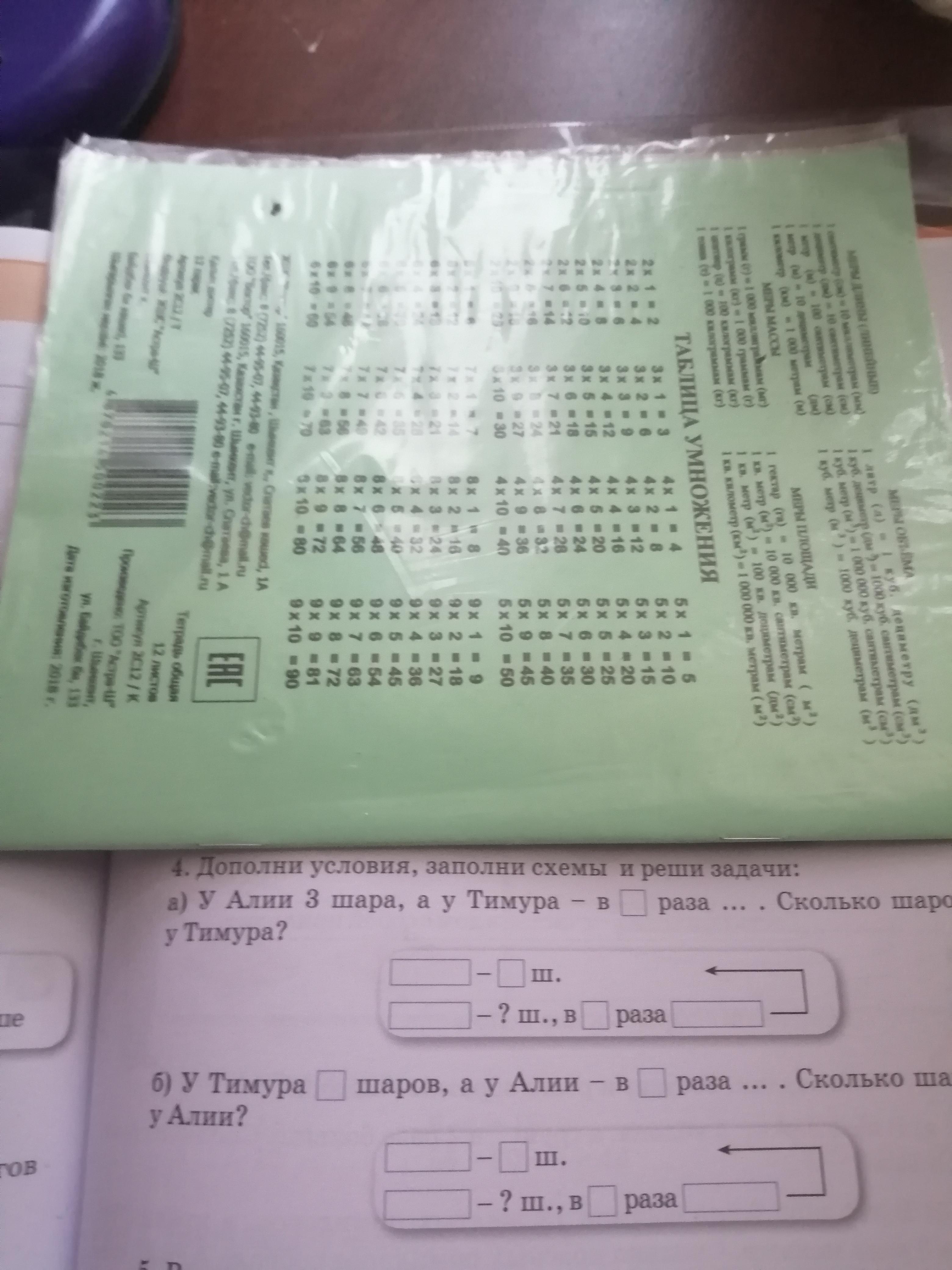 а)У Алии 3 шара , а у Тимура - в 4 раза больше.Сколько шаров у Тимура?