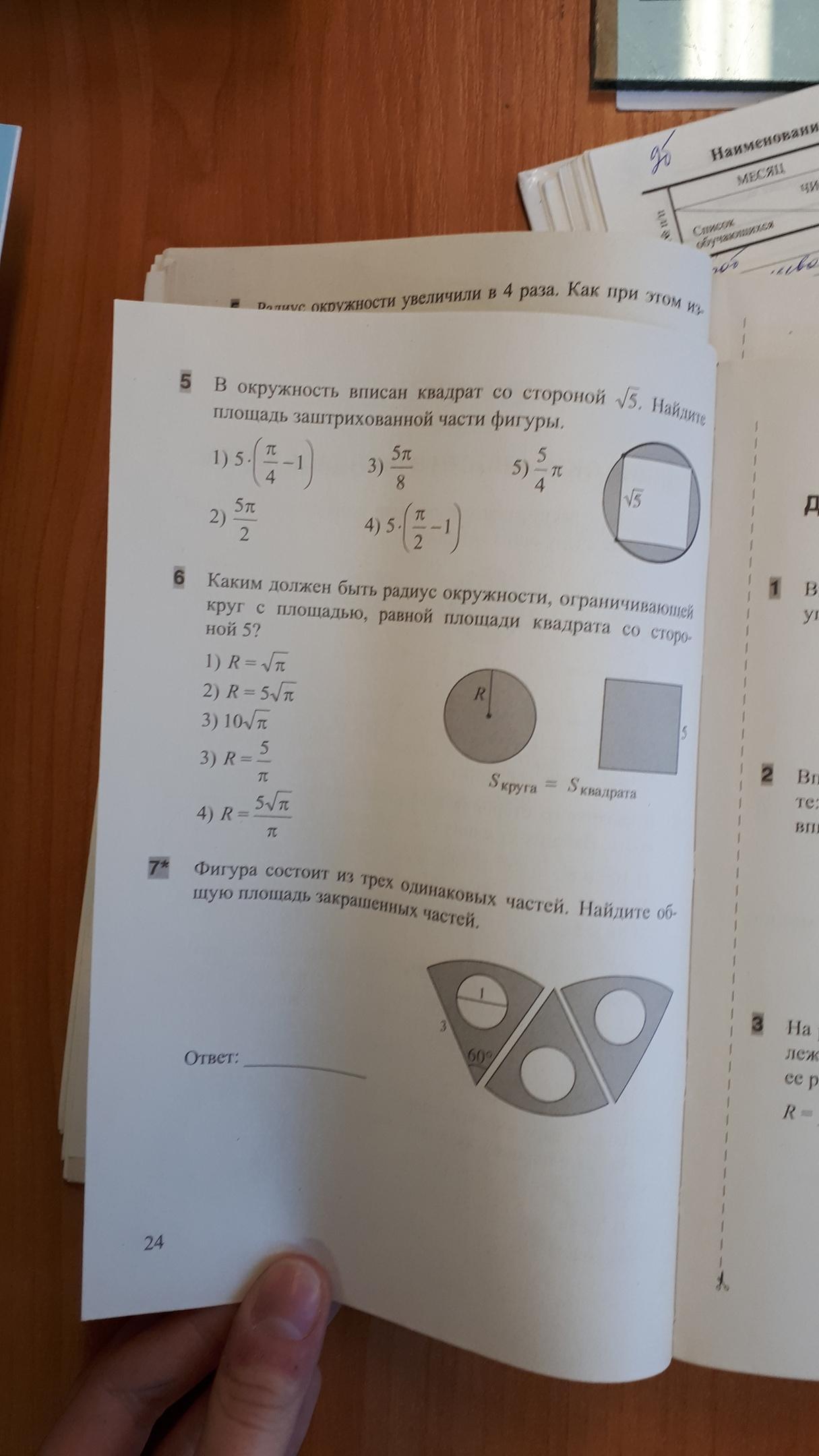 S=S1-S2=2.5п-5=2 1/2 п - 5 = 5п/2 - 5 = 5/2(п-2) = 5(п/2-1)