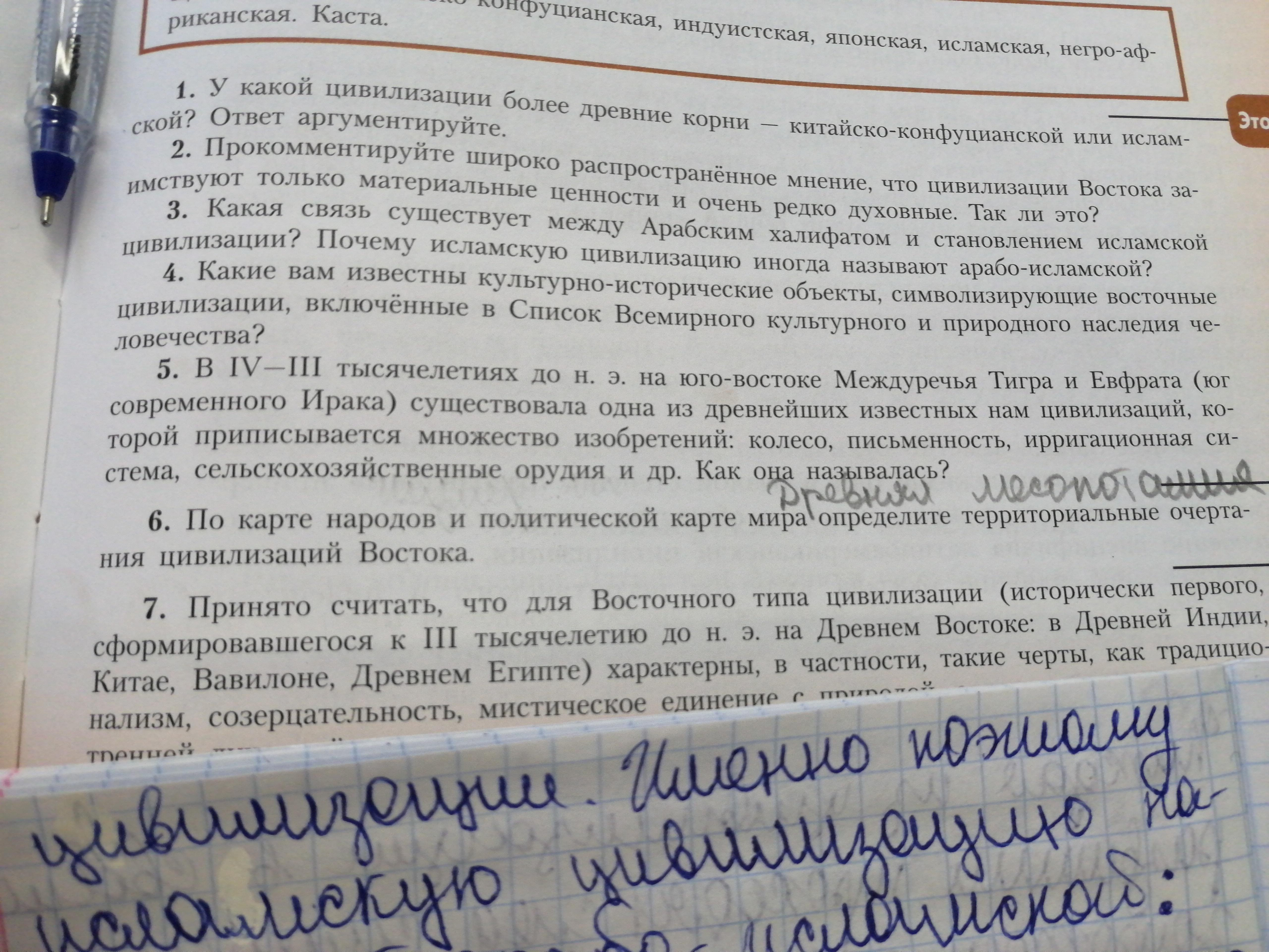 6) По карте народов и политической карте мира определите территориальные очертания цивилизаций Востока