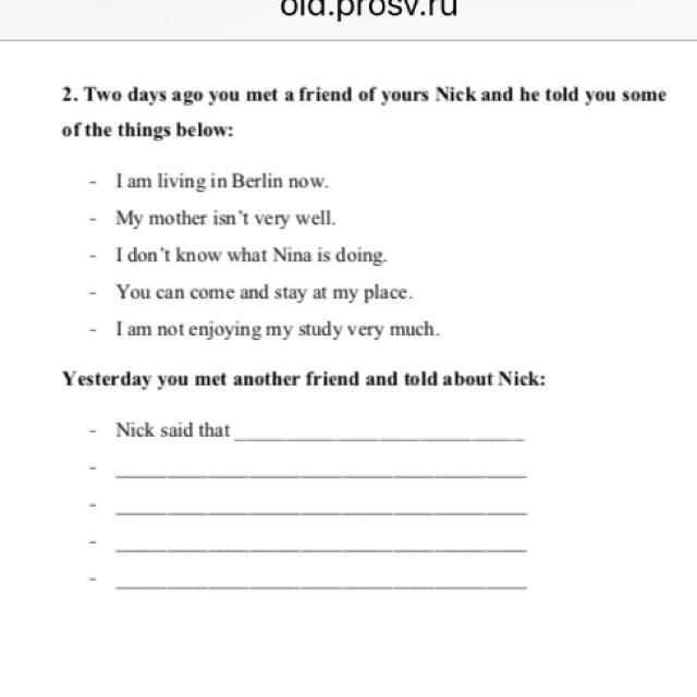 1. Nick said that he was living in Berlin then