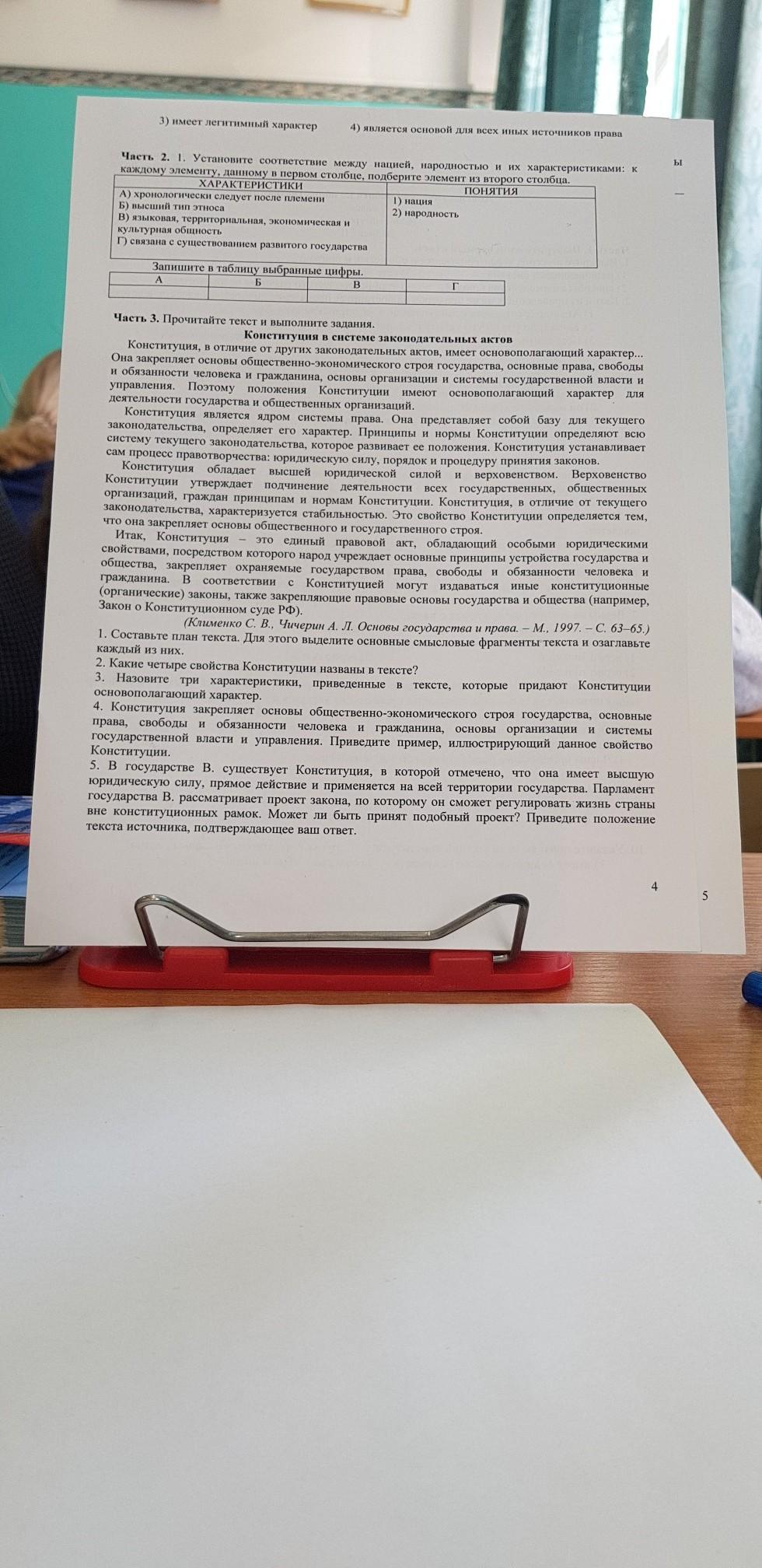 4 В ответе должно быть указано, что Конституция является основой правовой системы государства, в ней определены основные правовые принципы и нормы.