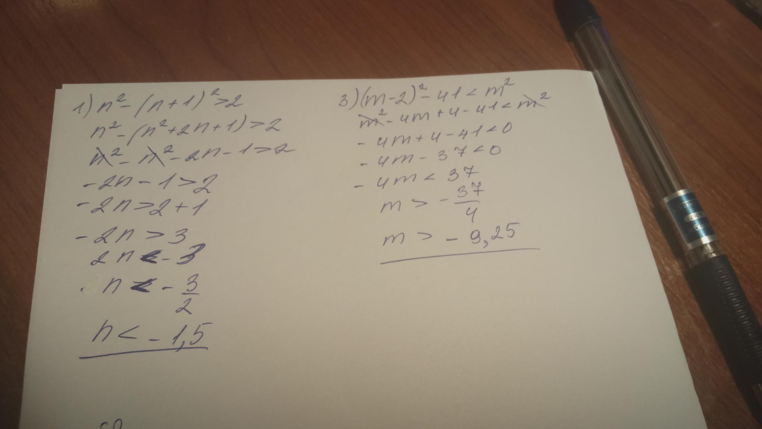 3) Раскрываем скобки по правилу квадрата разности: m²-4m+4-41<m²