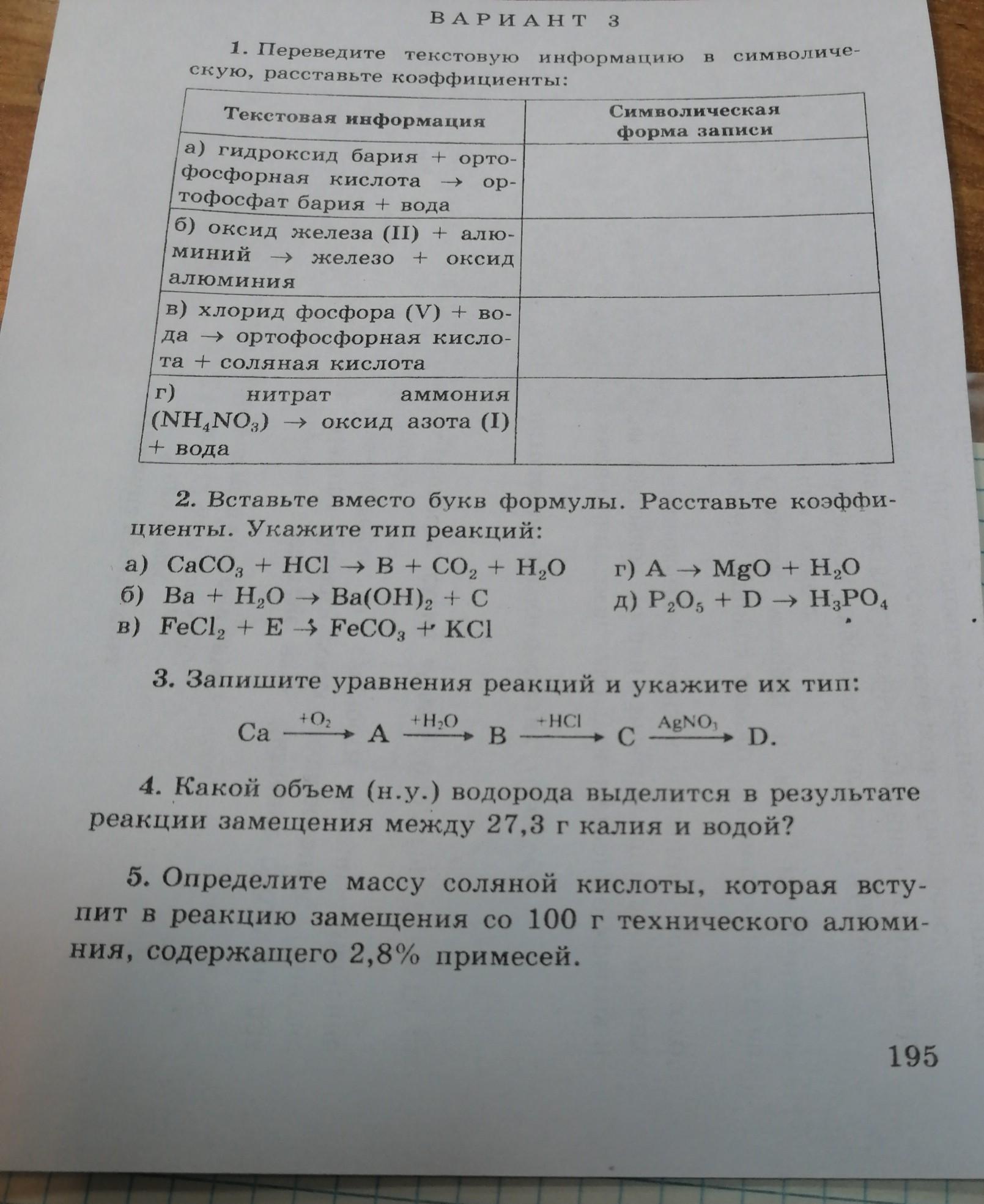 - Ba + 2H₂O = Ba(OH)₂ + H₂ (замещения)