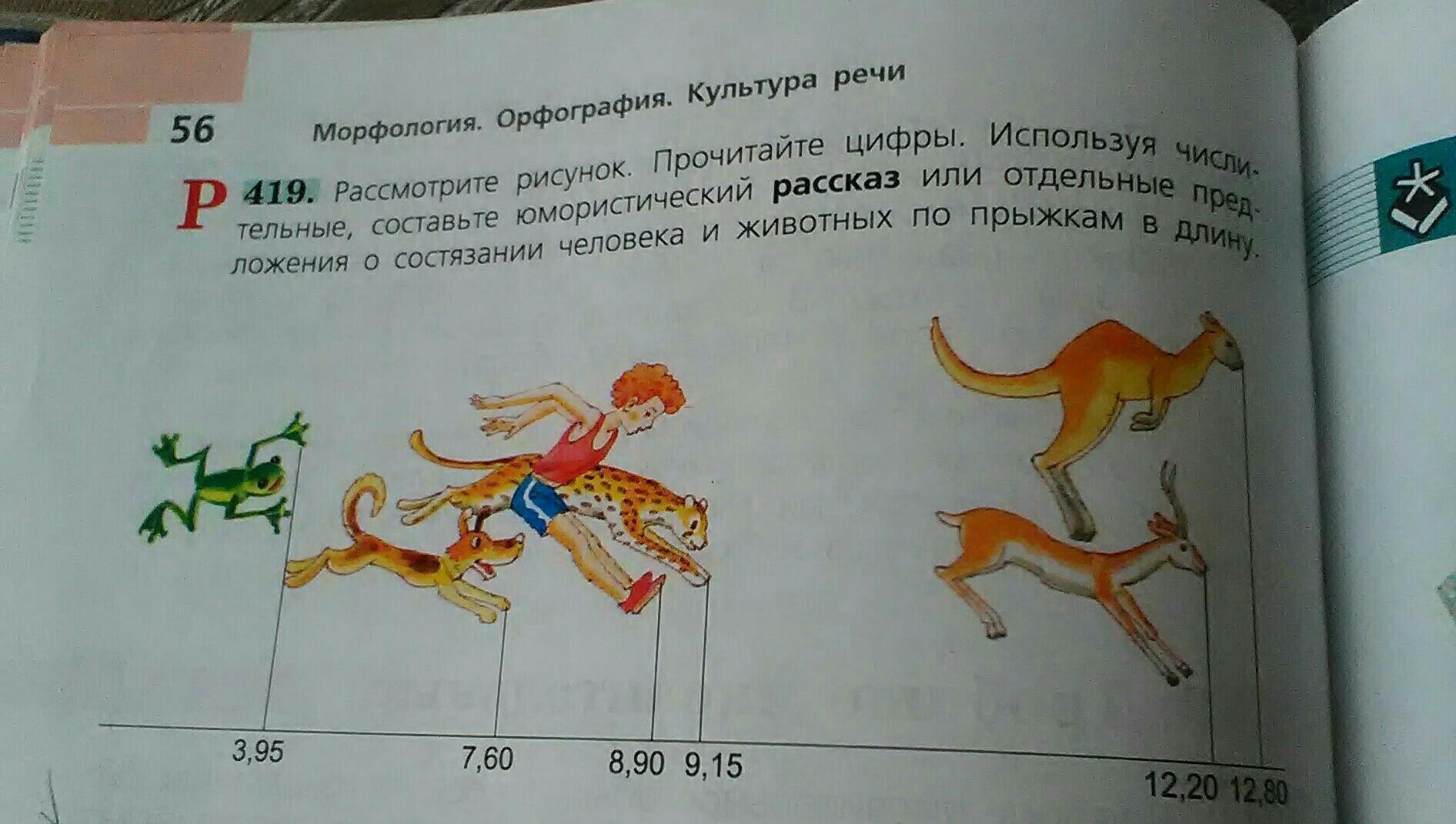 Однажды я участвовал в соревнованиях по прыжкам в длину. Соперники мне достались непростые. Итак, каждый из нас стартовал! Результаты были разными. Лягушка- три метра девяносто пять сантиметров. Собака- семь метров шестьдесят сантиметров. Я-(Фамилия,Имя),прыгнул на восемь метров девяносто сантиметров. Это же олимпийский рекорд ,но меня обошел гепард- девять метров пятнадцать сантиметров. Антилопа –двенадцать метров двадцать сантиметров. Кенгуру- двенадцать метров восемьдесят сантиметров. Прыжки гепарда, антилопы и кенгуру находятся за пределами человеческих возможностей. Ну, а я стал величайшим прыгуном среди людей в истории легкой атлетики!