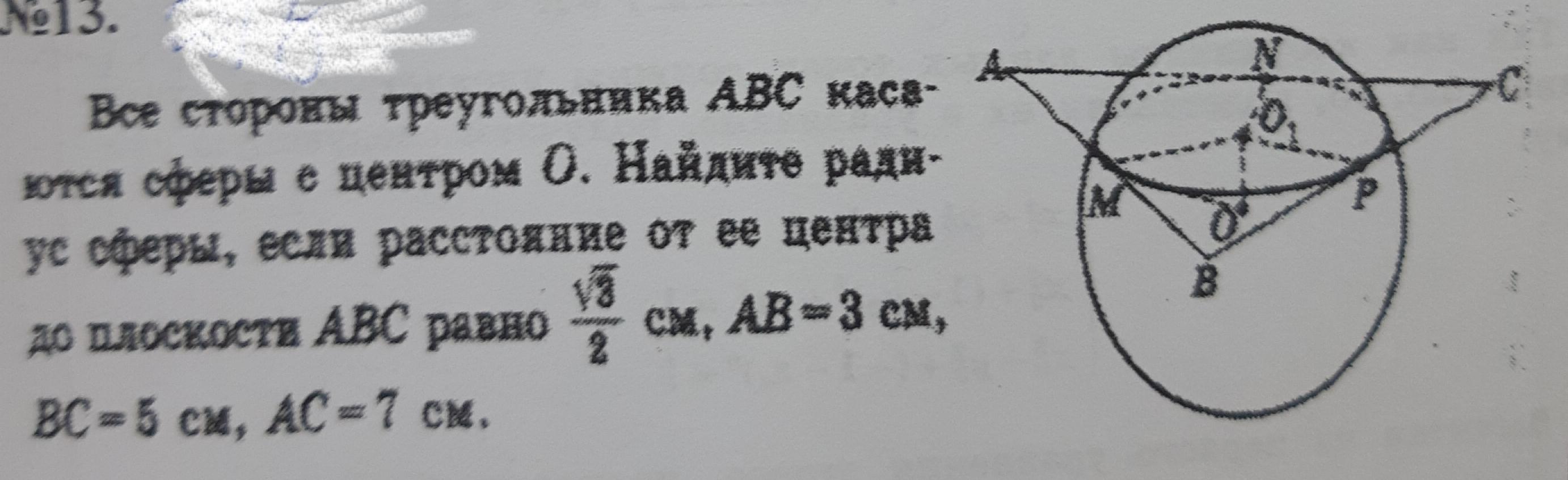 В этом треугольнике ОО₁= √3/2, МО - радиус сферы и МО₁ - это радиус вписанной окружности