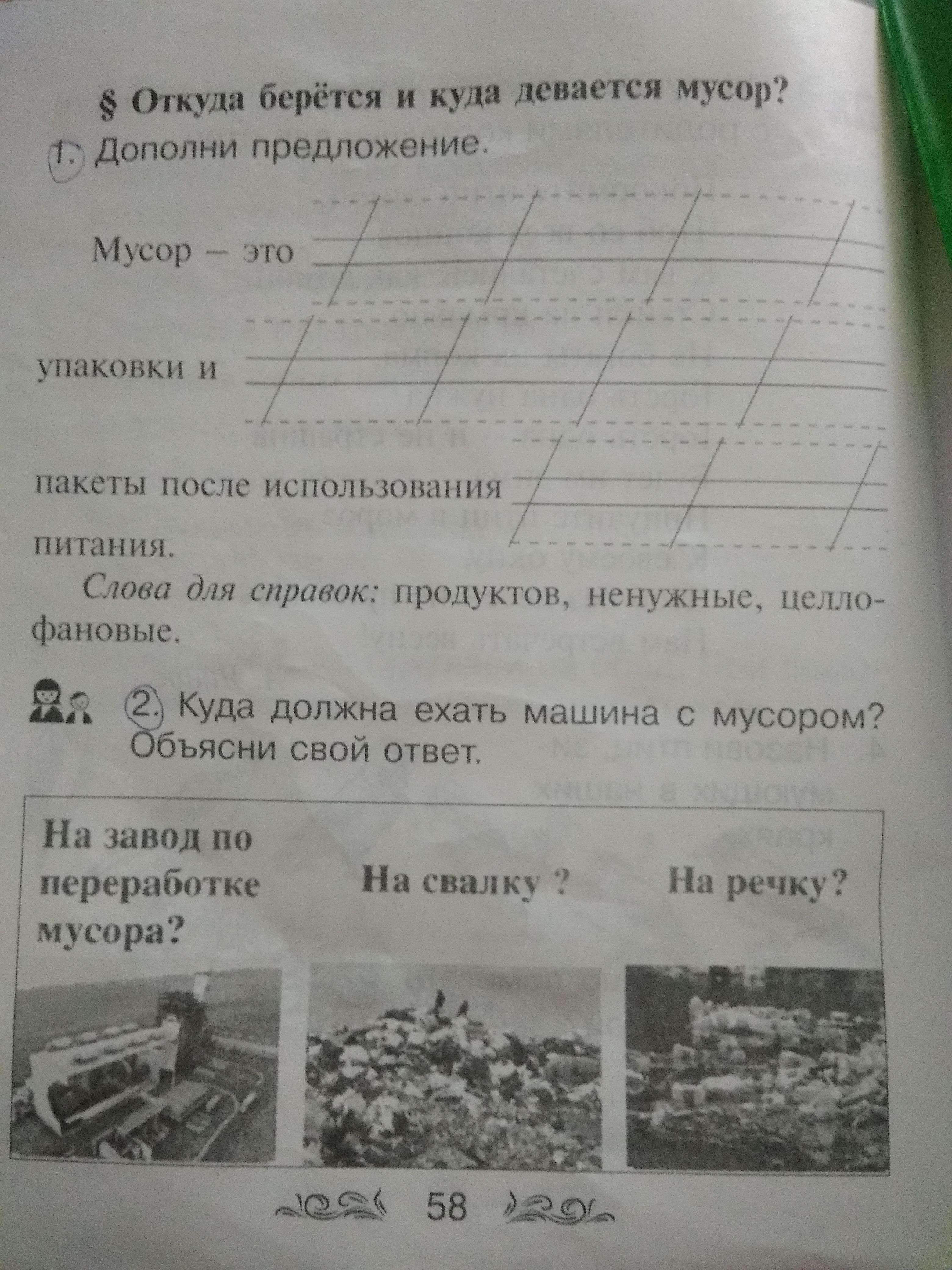 2. Машина с мусором должна ехать на завод по переработке мусора. Если в городе есть такой завод, то жителям предлагается сортировать мусор по контейнерам: в один контейнер - отходы от продуктов питания, в другой - стекло, в третий - бумагу, в четвёртый - пластик. Или количество контейнеров может ограничиваться только, например "Для пластика", если в городе есть только завод по переработке пластика.