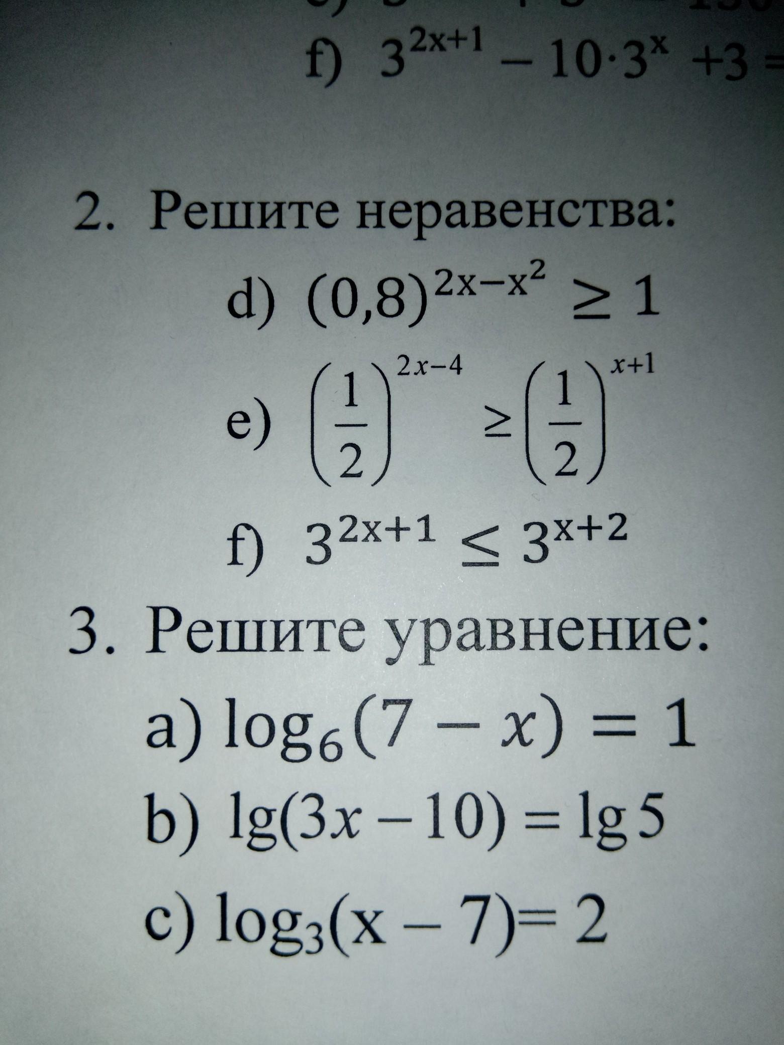 e) (1/2)²ˣ⁻⁴≥(1/2) ˣ⁺¹ 2x-4≤x+1 x≤5 ⇒ x∈(-∞;5].