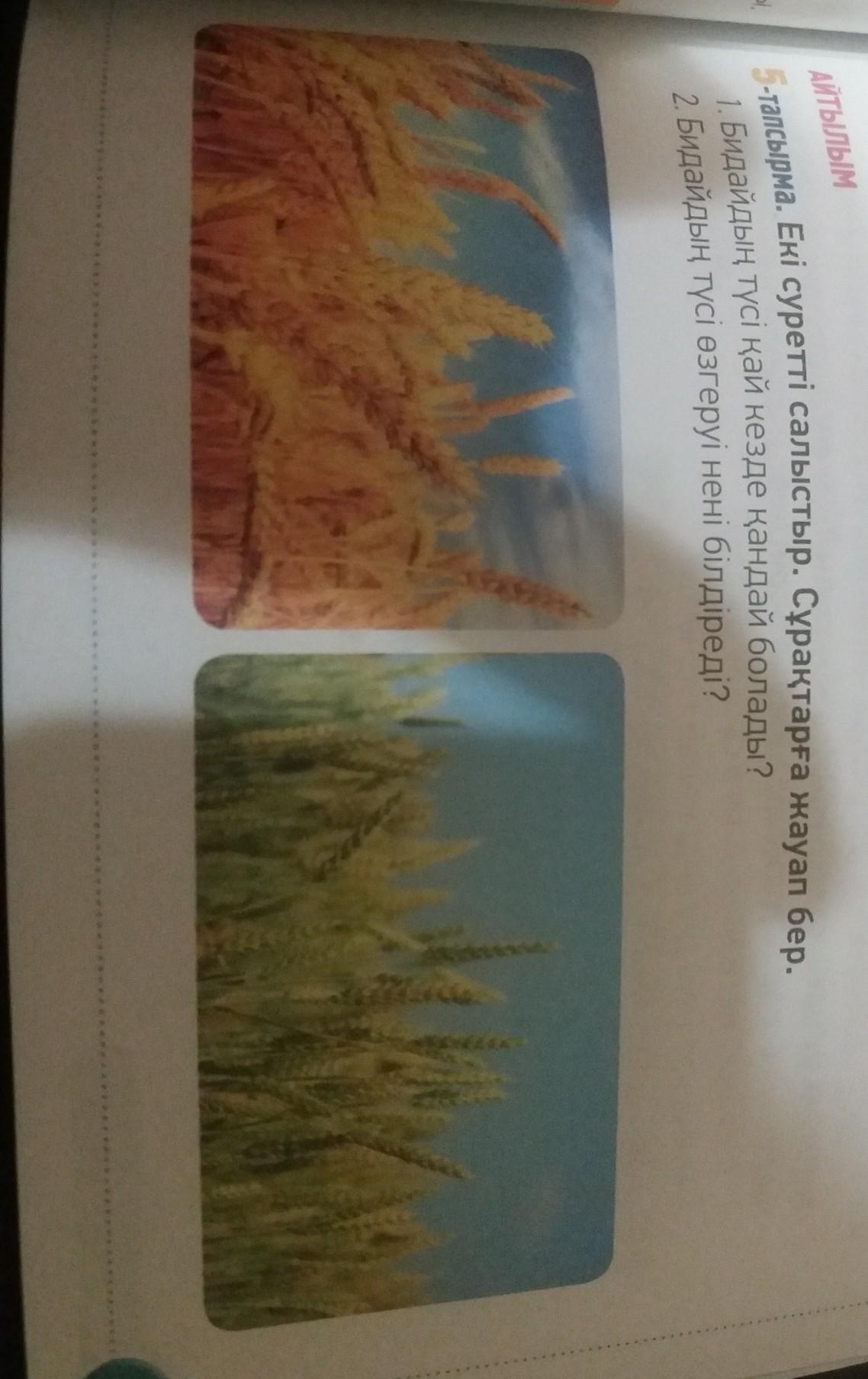 1.Бидайдың түсі күзде қызғылт сары болады ал екінші суретте бидайды жаңа өсіп келе жатқан кезі(күздің екінші айында)