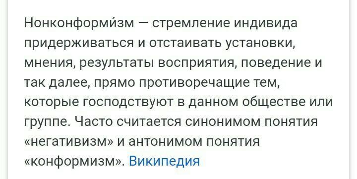 но так как его мнение не соответствует нормам общества это нонконформизм