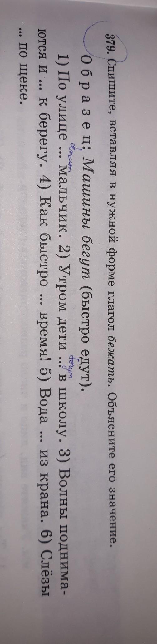 Волны поднимвются и бегут к берегу(Приближаются к берегу), Как быстро бедит время! (Быстро проходит время), Вода бежит ищ крана(Льется из крана), Слезы бегут по щеке(Слезы льются)