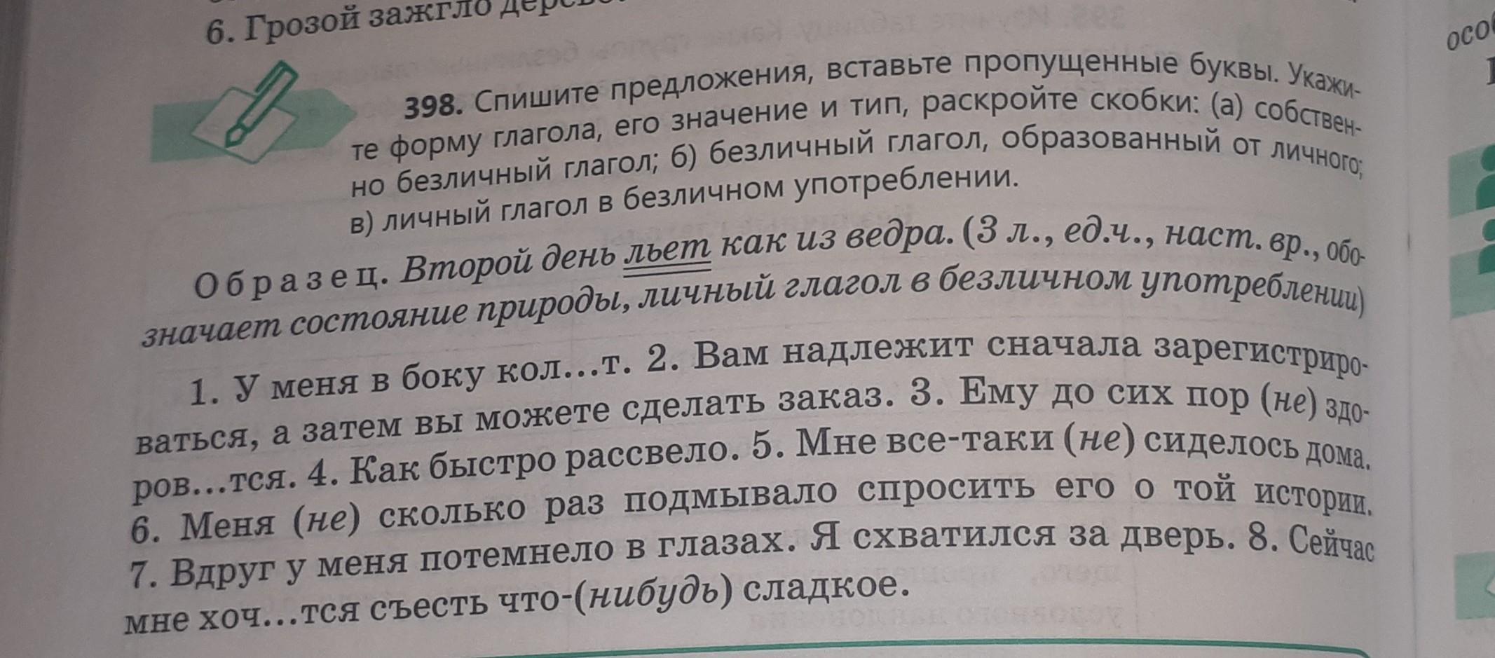 колит(2л,ед.ч,наст.вр),не здороваться(3л,ед.ч настр.вр),не сиделось(1л,мне.ч,наст.вр.), несколько,хочется(3л,ед,ч,наст.вр)что-нибуть