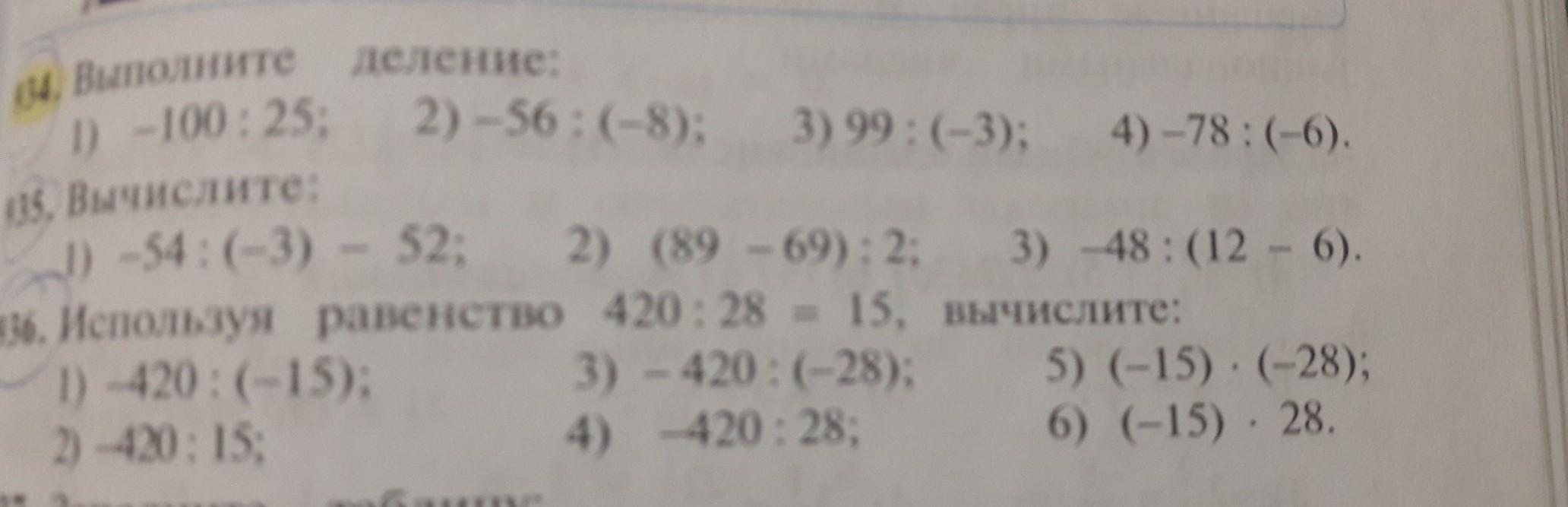 1)-420 : (-15) = 28 2) -420 : 15 = -28 3) -420 : (-28) = 15