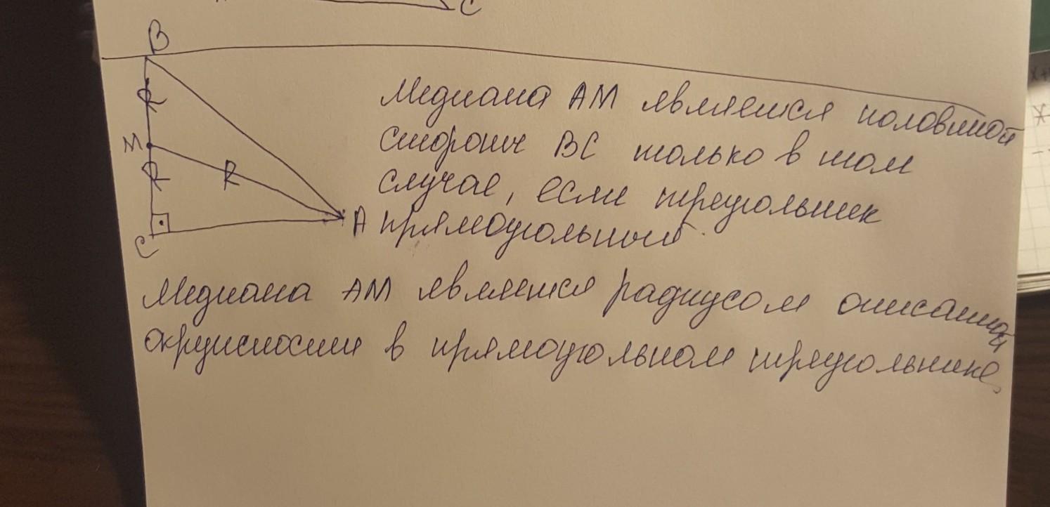 Решение прикрепил. Медиана является половиной гипотенузы и радиусом описанной окружности в прямоугольном треугольнике.